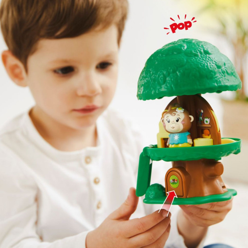« POP » ! Une pression sur la porte et l’arbre s’ouvre. A l’intérieur, 3 pièces à découvrir: la chambre, la cuisine et la salle de bain.